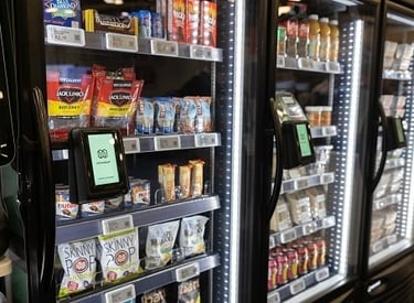 Chilled beverages and fresh items managed with secure, contactless technology.